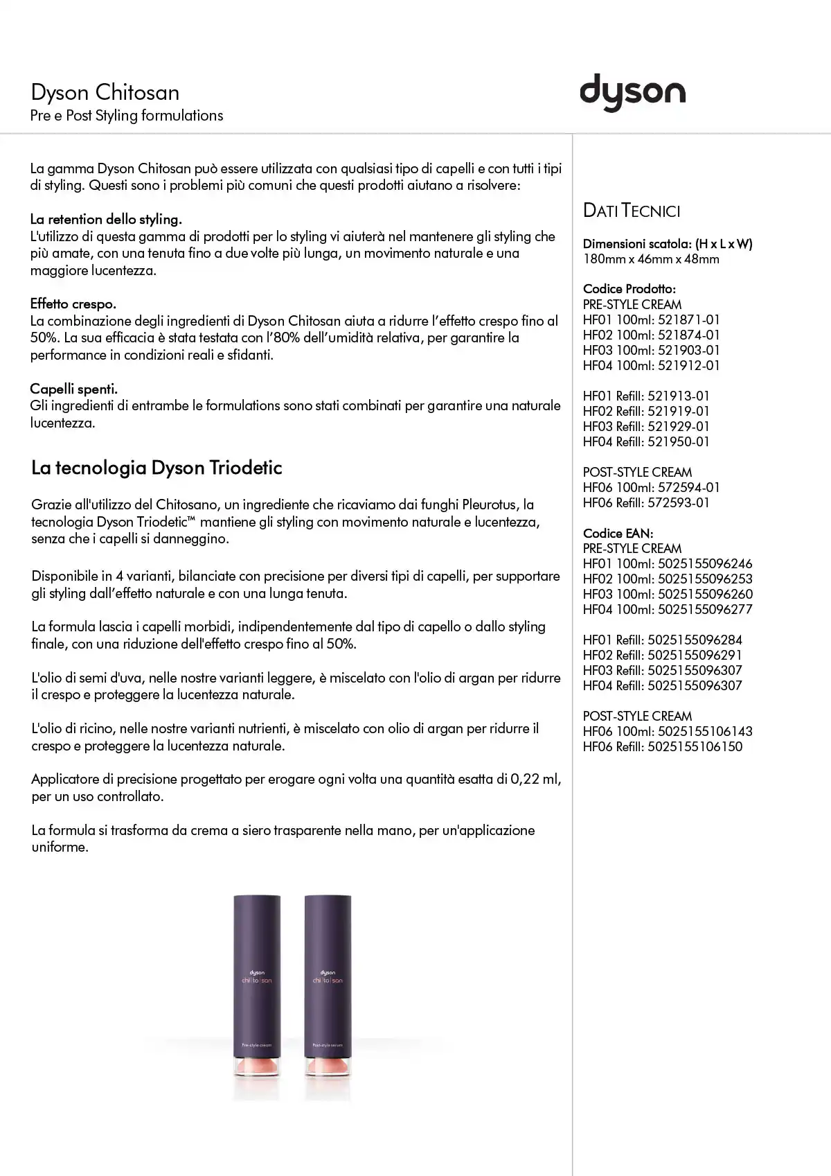 Tenuta 2 volte più a lungo – Grazie alla tecnologia Dyson Triodetic™ e all’ingrediente chiave Chitosan.